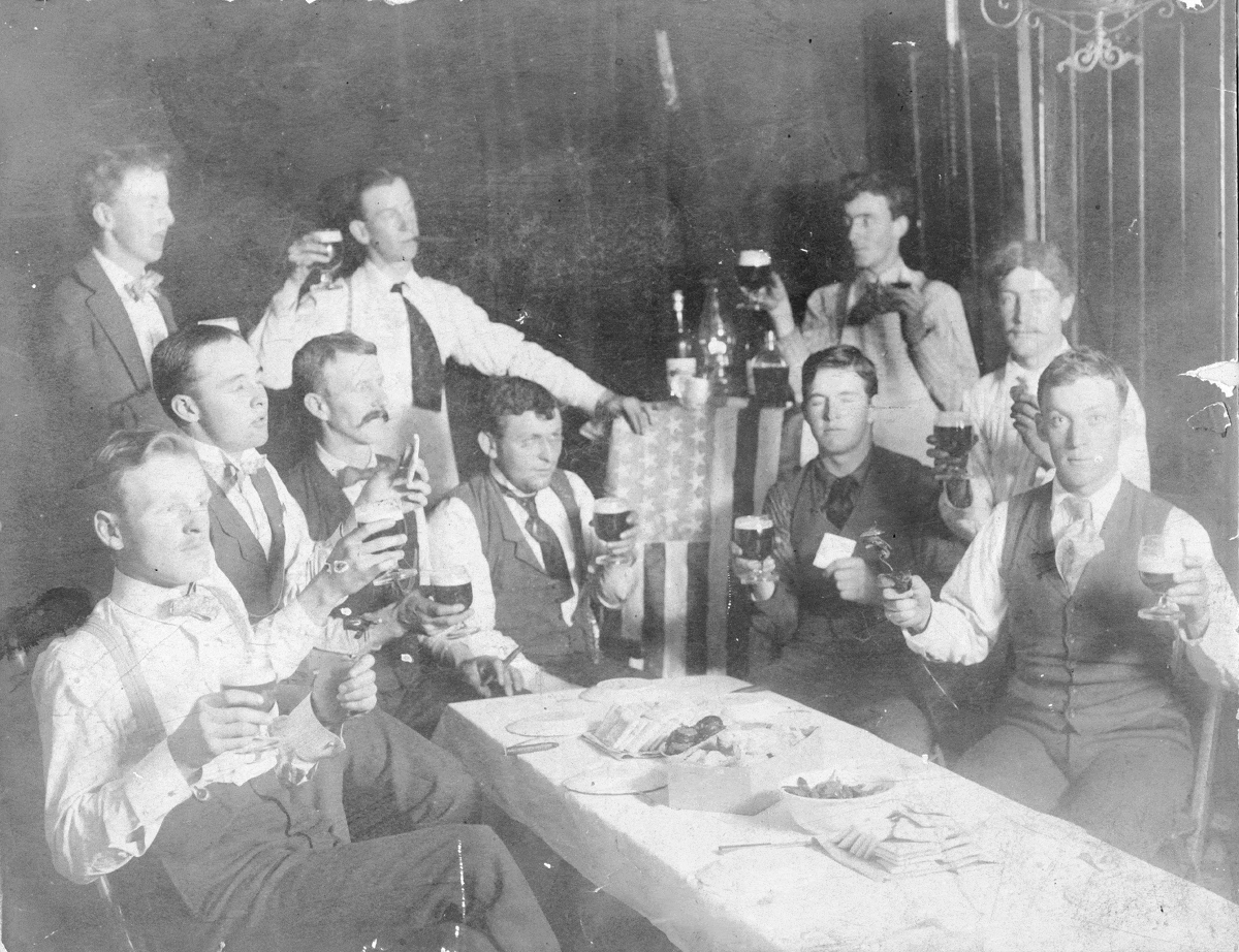 Many may be toasting “the luck o’ the Irish” this week, however, these men rose their glasses to their successful performance of “Rio Grande,” at the Dewey Theatre in August 1899. These amateur actors held the play as a benefit for the Catholic Church’s St. Mary’s Altar Society. The show raised about $120—impressive since they only charged 25-50¢ per person!